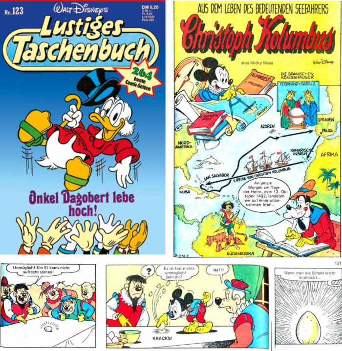 Ich habe das zu ersten Mal gesehen in einem Donald-Duck-Comic (mein Blog https://hannosteinerdenkt.de/sind-die-donald-duck-lustigen-taschenbuecher-eigentlich-aus-den-usa/) – und zwar in „Aus dem Leben des bedeutenden Seefahrers Christoph Columbus“ im „Lustigen Taschenbuch-Nr. 123“ . Man kann‘s (gebraucht) kaufen auf z.B. Amazon oder (umsonst) angucken auf „Internet Archive“ https://archive.org/details/ltb123-14bd/page/n101/mode/2up.